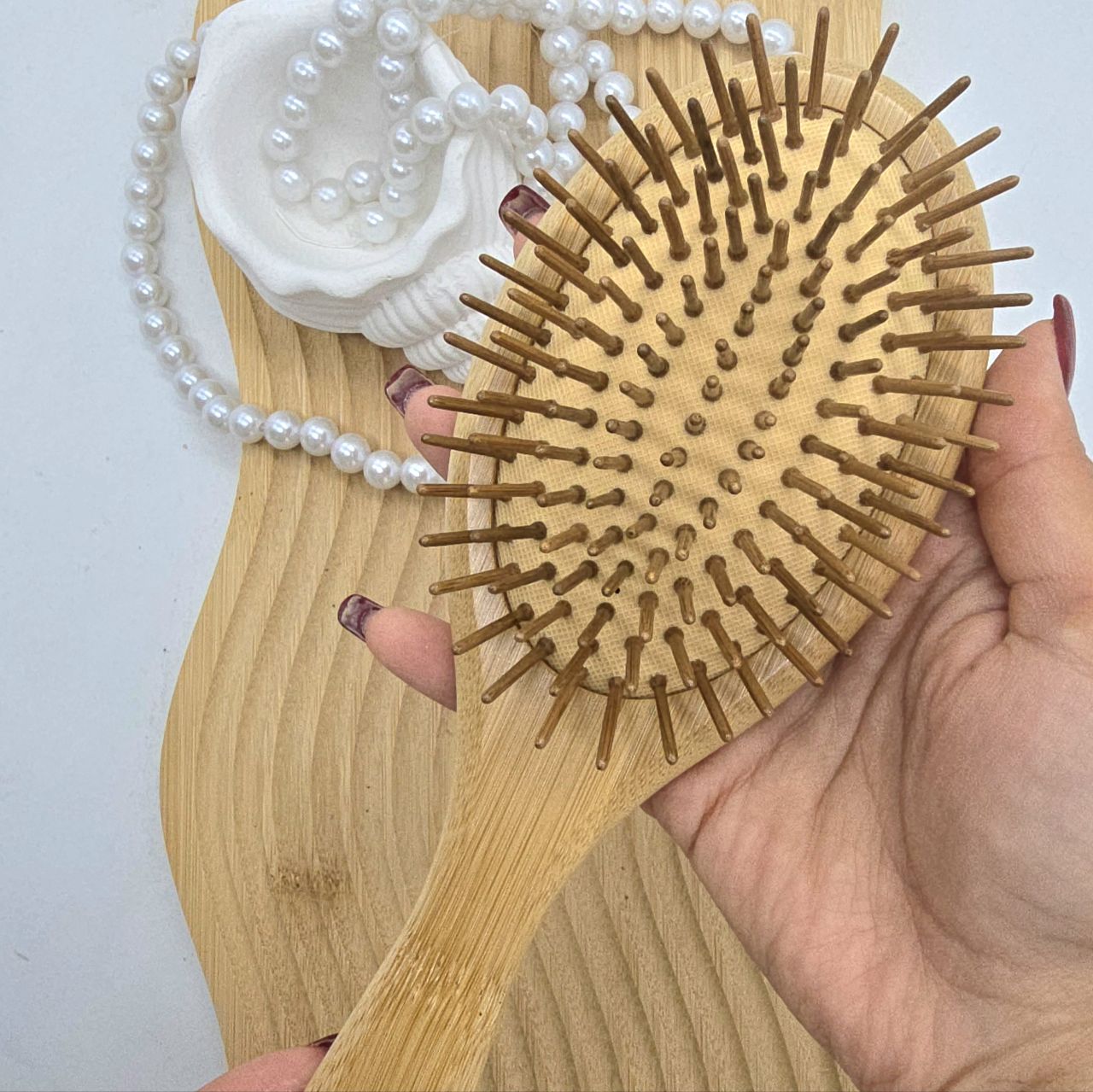 برس چوبی بامبو بیضی (بزرگ)